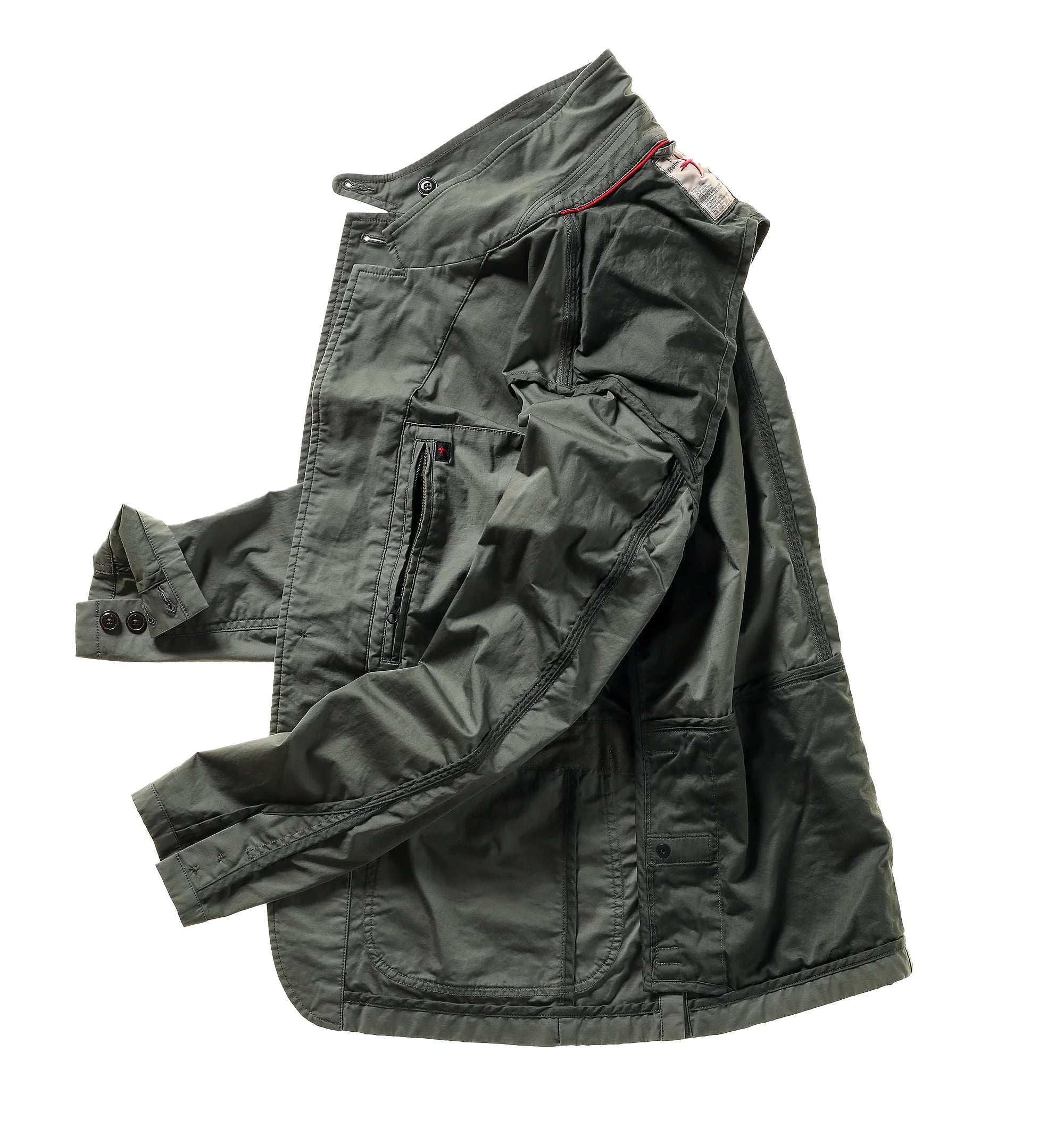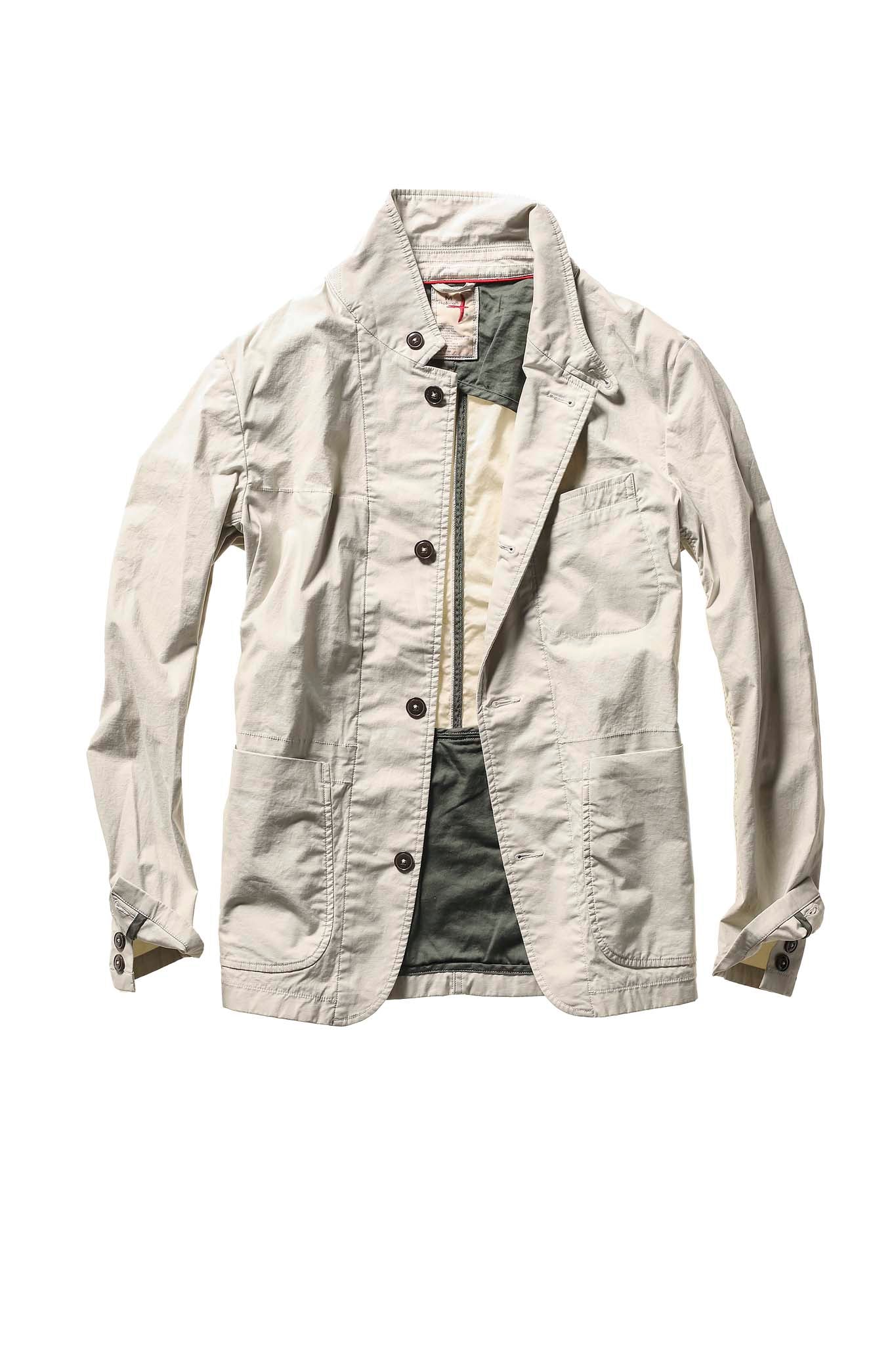 A blazer that proves its versatility simply by how it closes at the throat. This reimagined sports jacket is built for every scenario—from the office to your daily ride and even as a refined evening option. Eschew the urge to formalize it; think of it as the practical counterpart to a well-worn denim jacket. With no bulky padding or rigid tailoring, it adapts naturally to your form. Functional sleeve buttons are meant to be casually rolled up, and thoughtful construction details are inspired by authentic fieldwear—built to look lived-in and require little fuss.