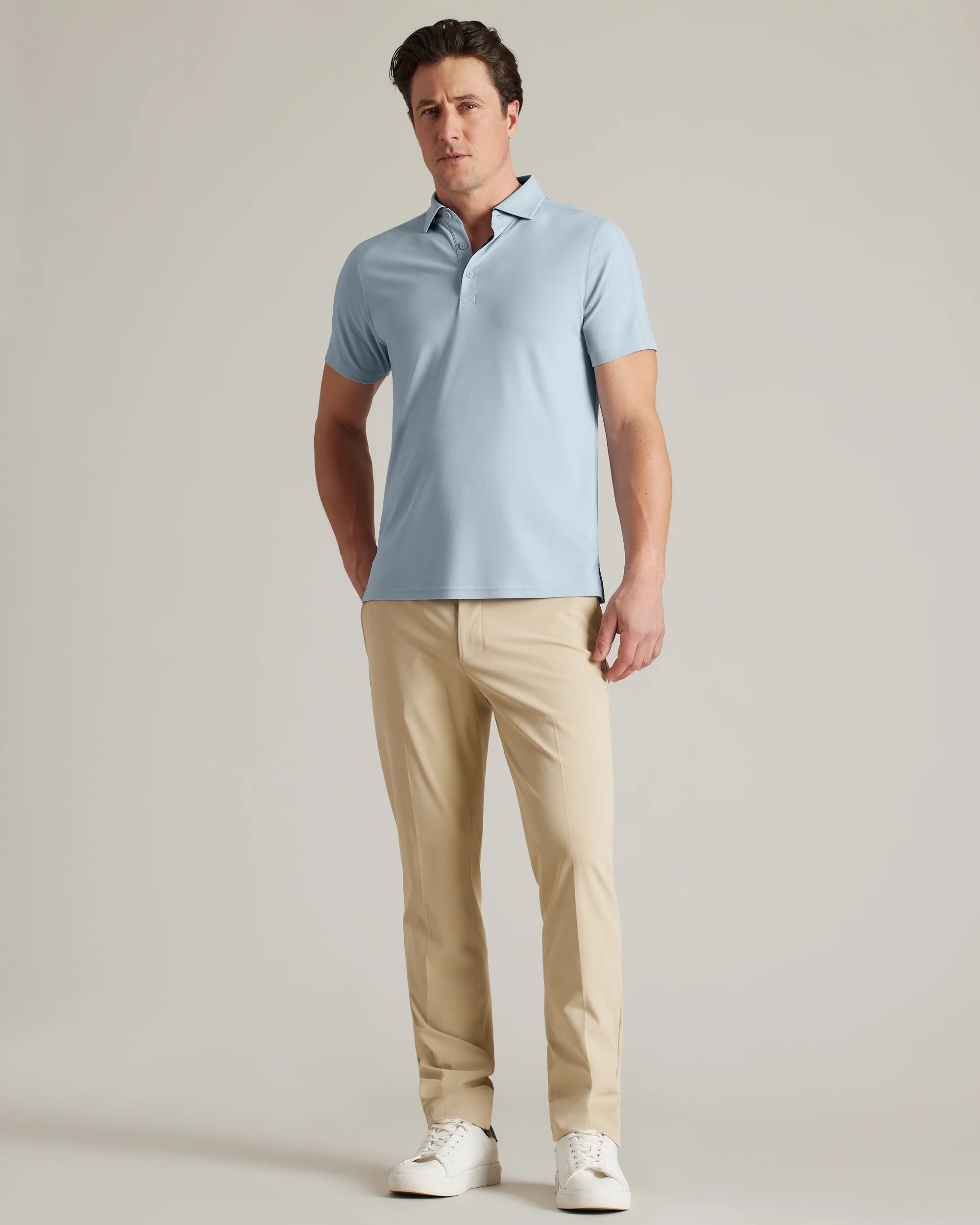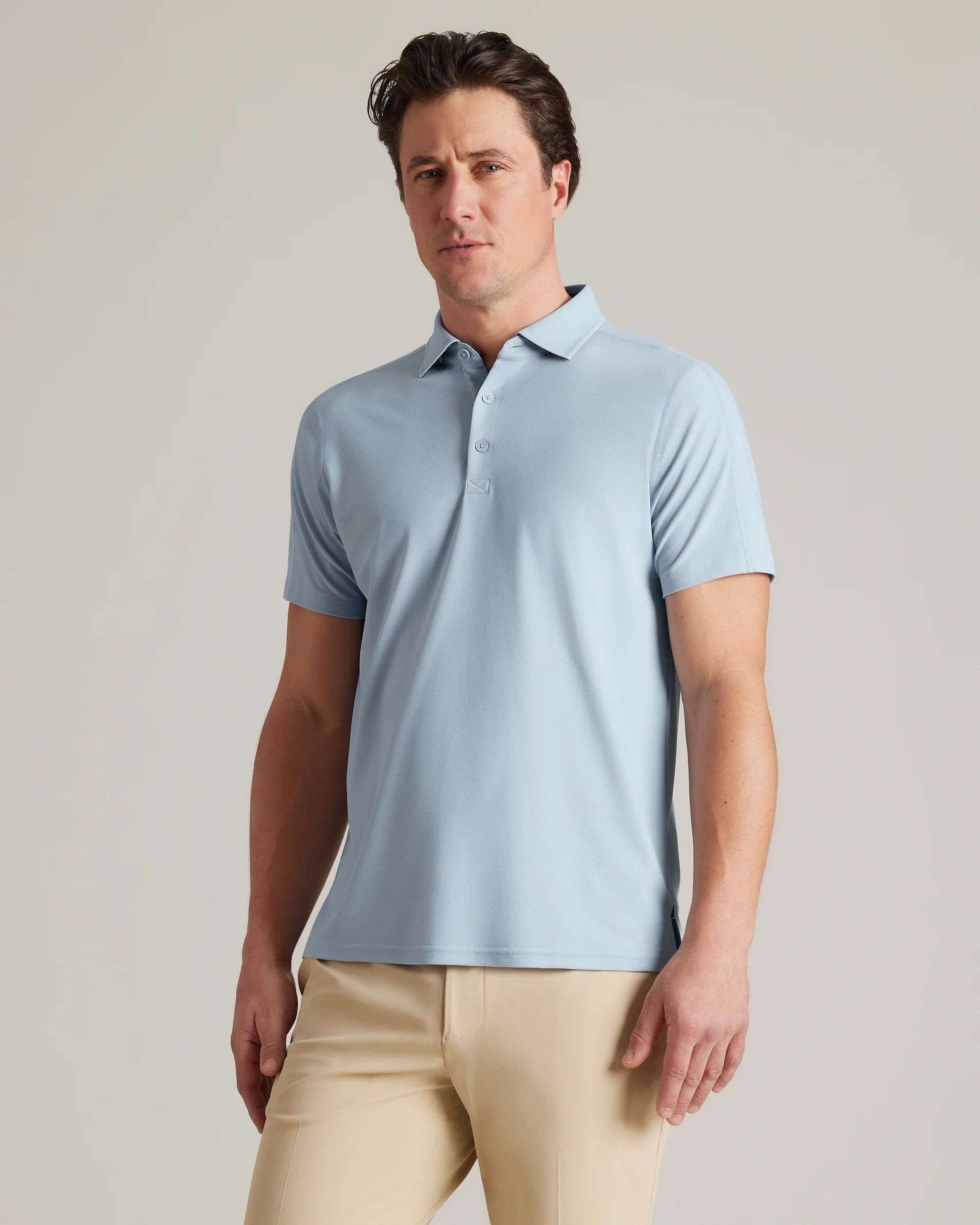 • 3-button placket for style and breathability