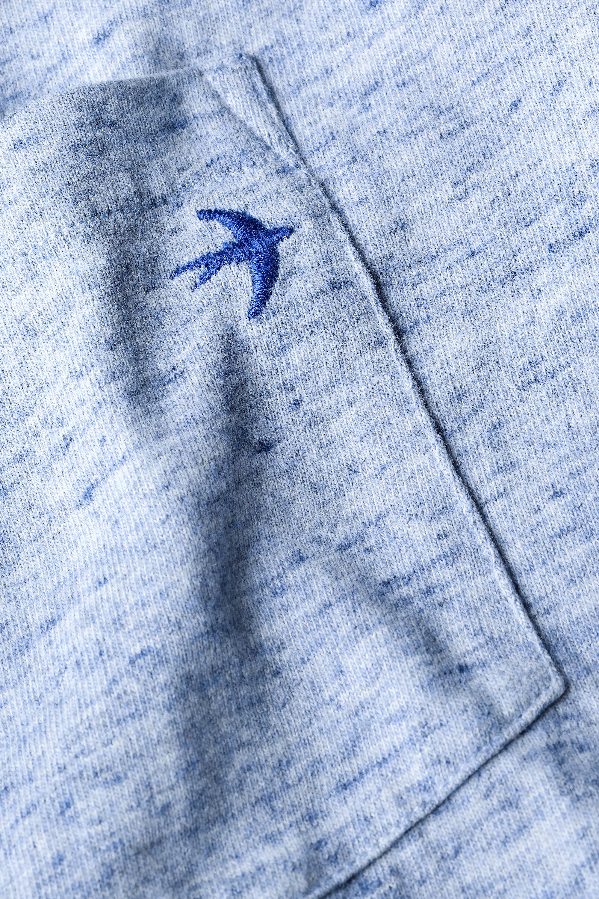 • Single patch pocket adorned with an embroidered barn swallow