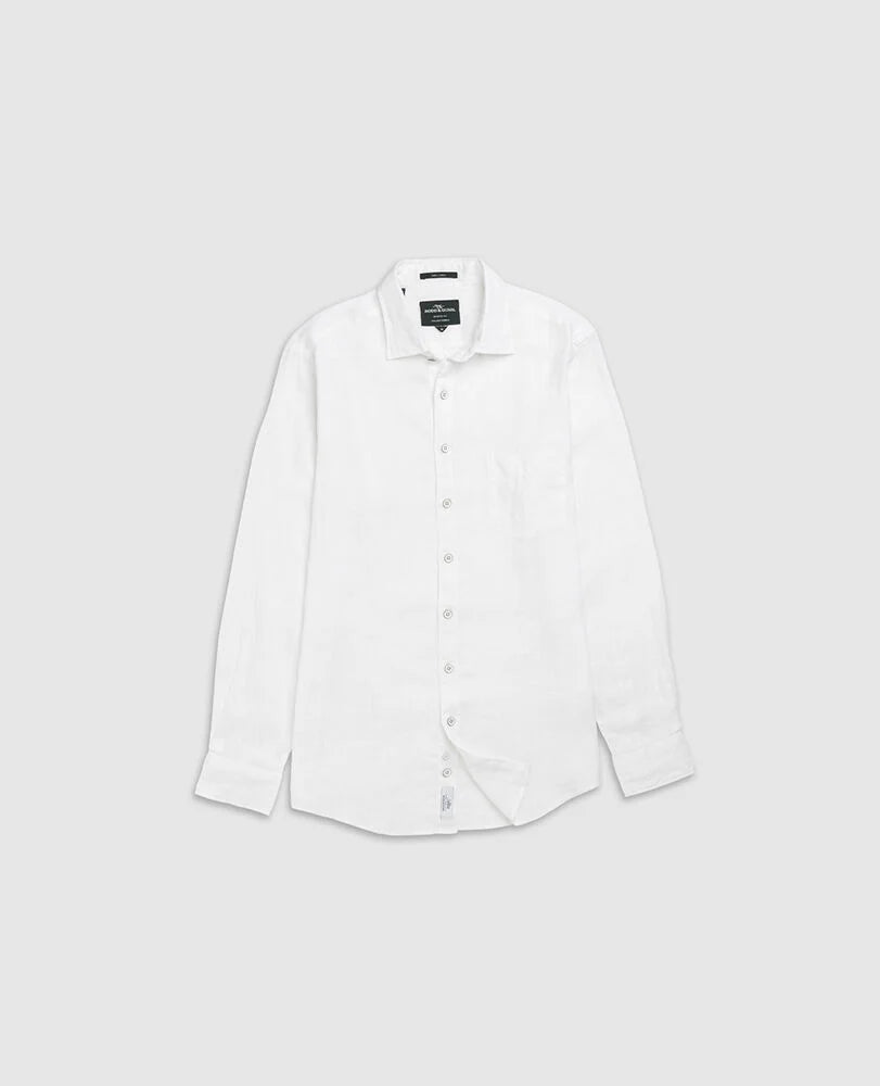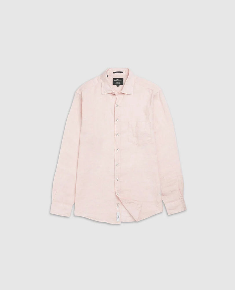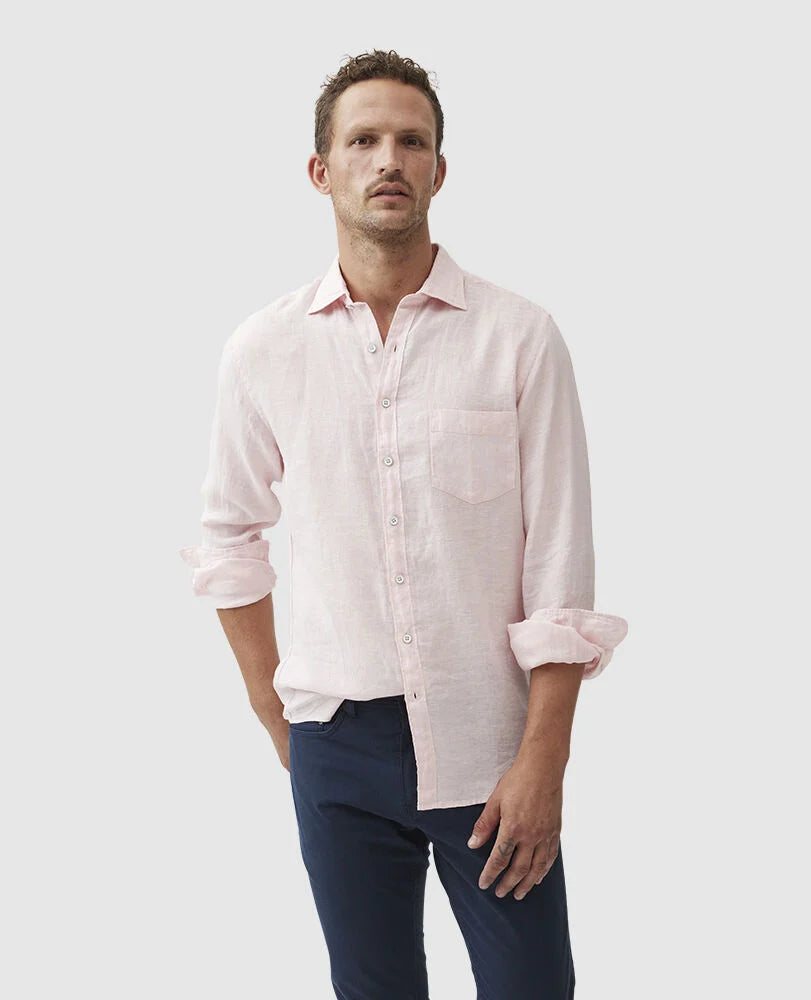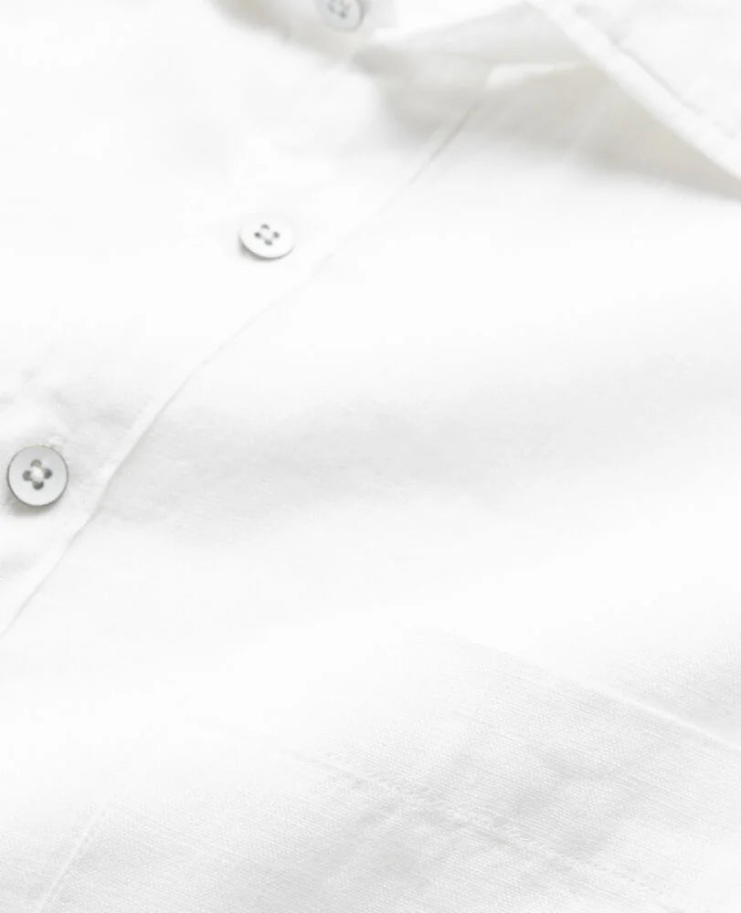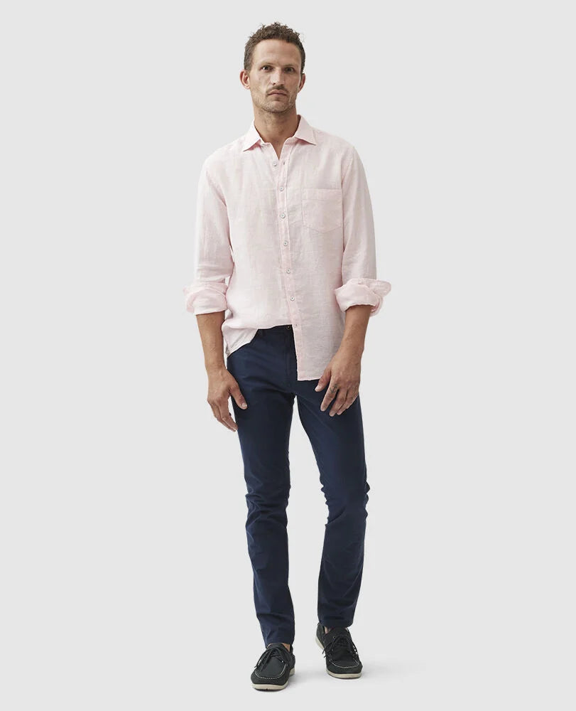 This shirt is woven from yarns that feature a unique delave wash, which lends the fabric a slightly faded look and soft feel. Milled in Italy, from premium linen harvested in France and Belgium and certified by European Flax. Pre-washed for easy going feel, the fabric will continue to soften over time and with each and every wash.