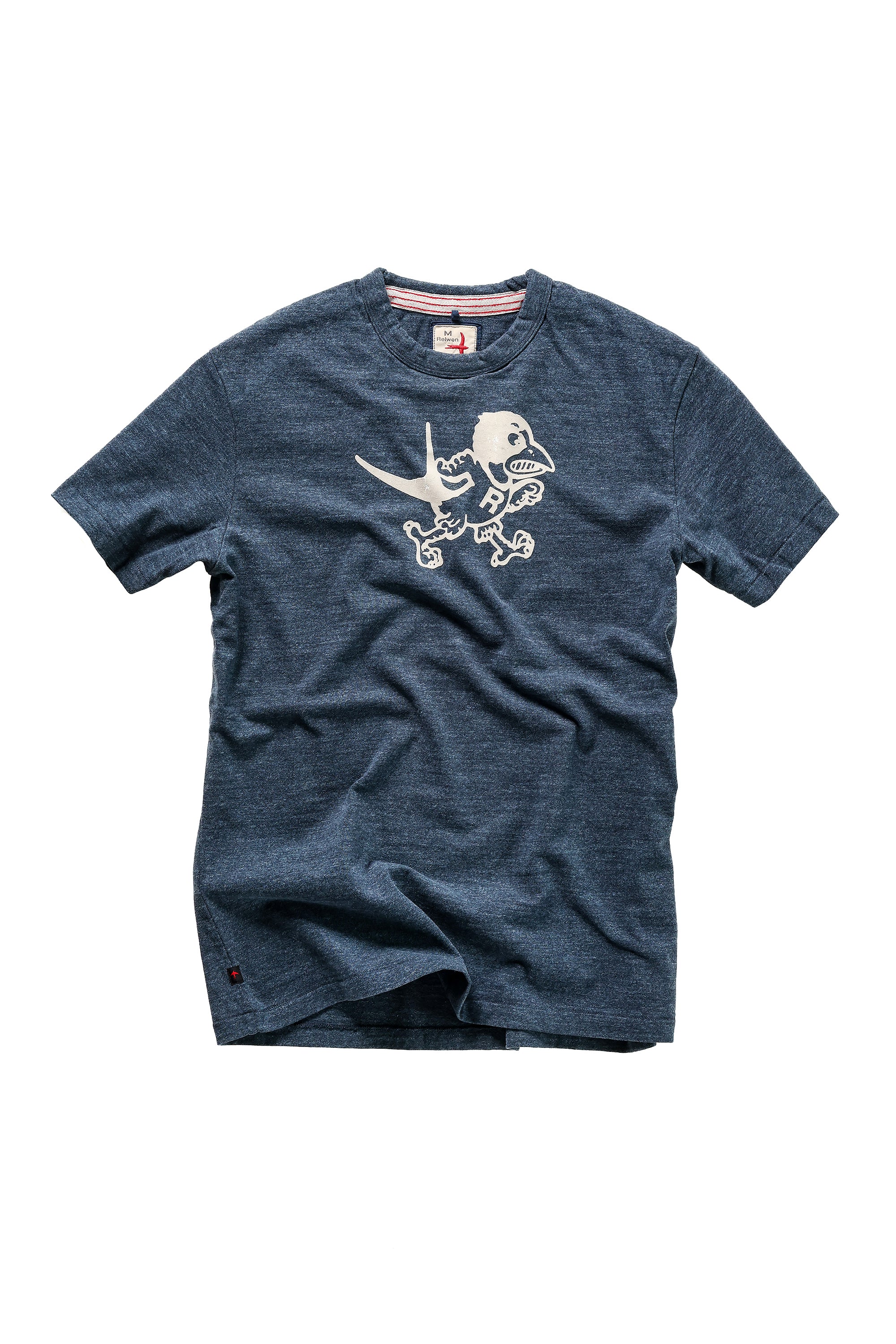• Distressed multi-layer plastisol graphic prints with flocking texture