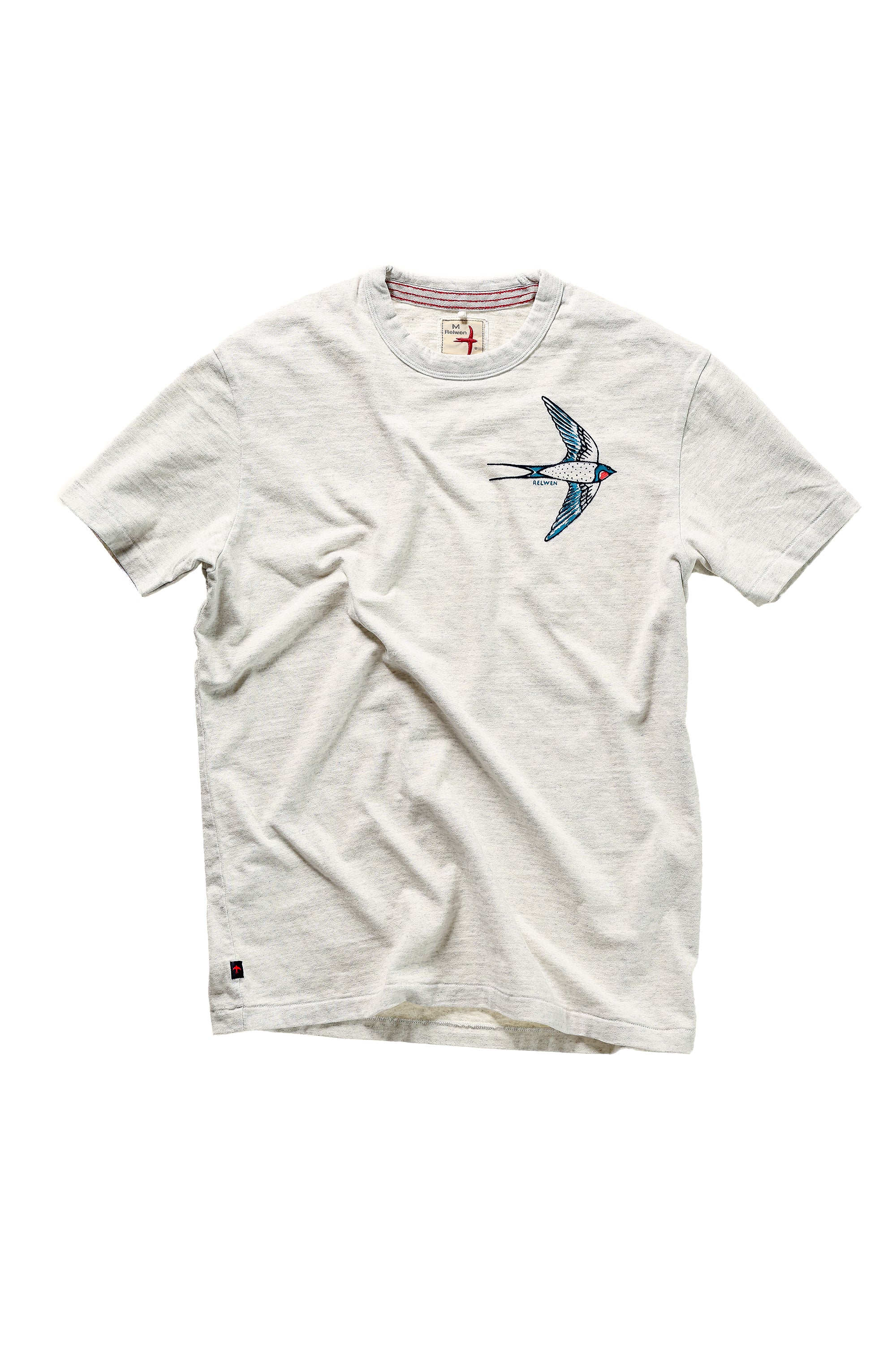A classic tee elevated with purpose and edge. This mid-weight shirt is crafted from peached 100% cotton using 16’s ringspun jersey, offering a durable yet soft feel at 220 gsm (6.5 oz). Distressed, multi-layered plastisol graphics with flocking add depth and character, giving it that worn-in look from day one. Reinforced with woven cotton tape across the back neck and shoulder seams for structure where it matters most, while blind-stitched sleeves and hem keep the lines clean and understated.