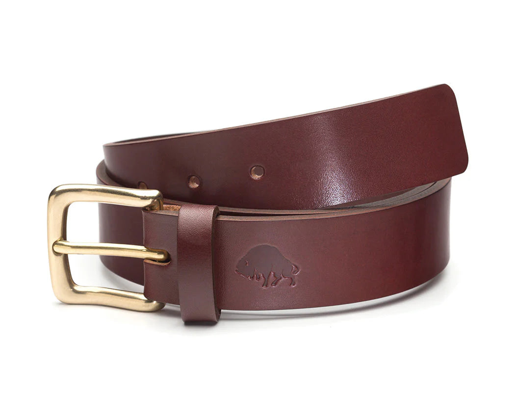 Strong and durable, this handsome belt will be with you for years to come. The No. 1 belt is made with an English bridle leather tanned by Hermann Oak of St. Louis, Missouri. The buckle and belt loop are fastened to the belt with solid brass machined rivets.
