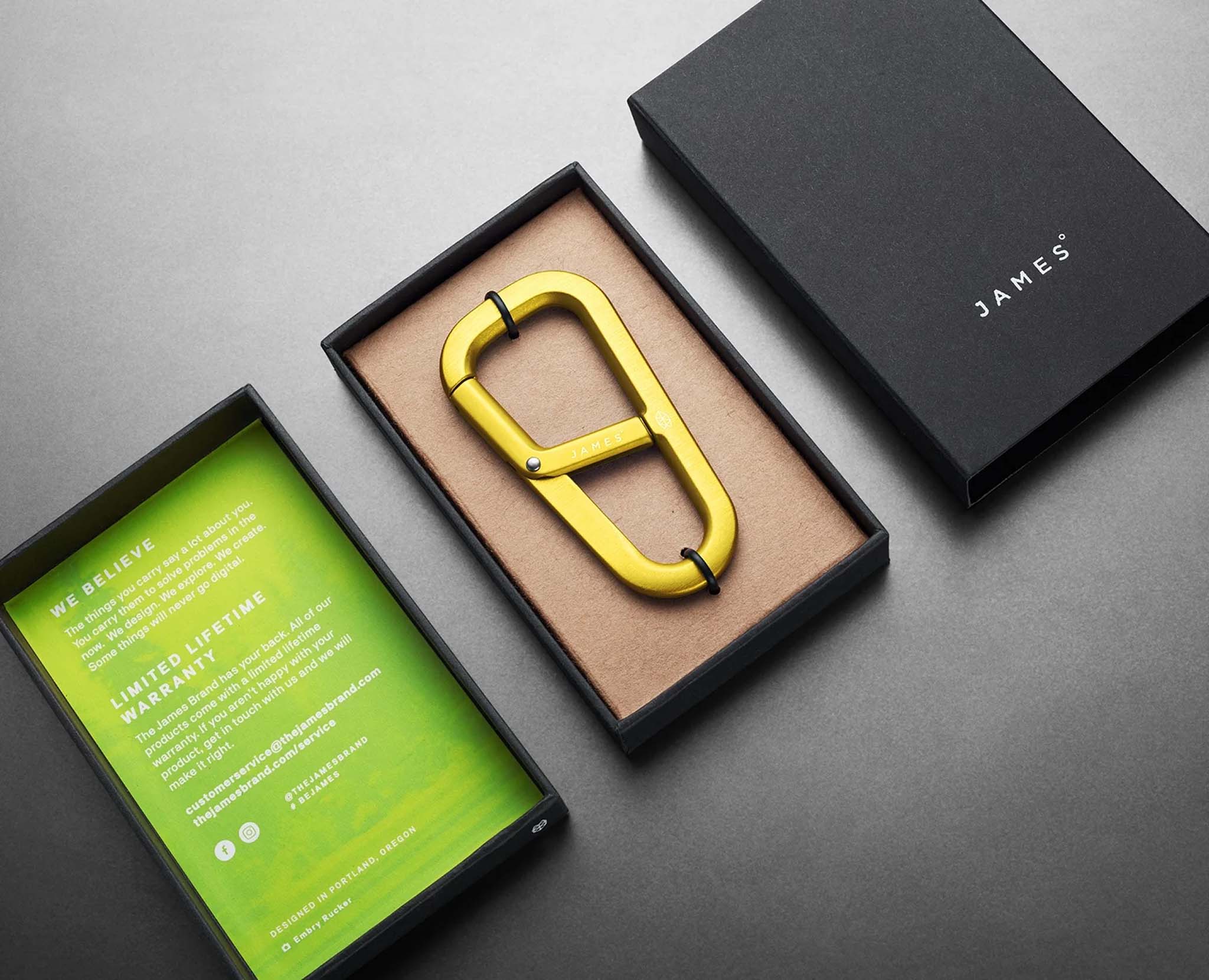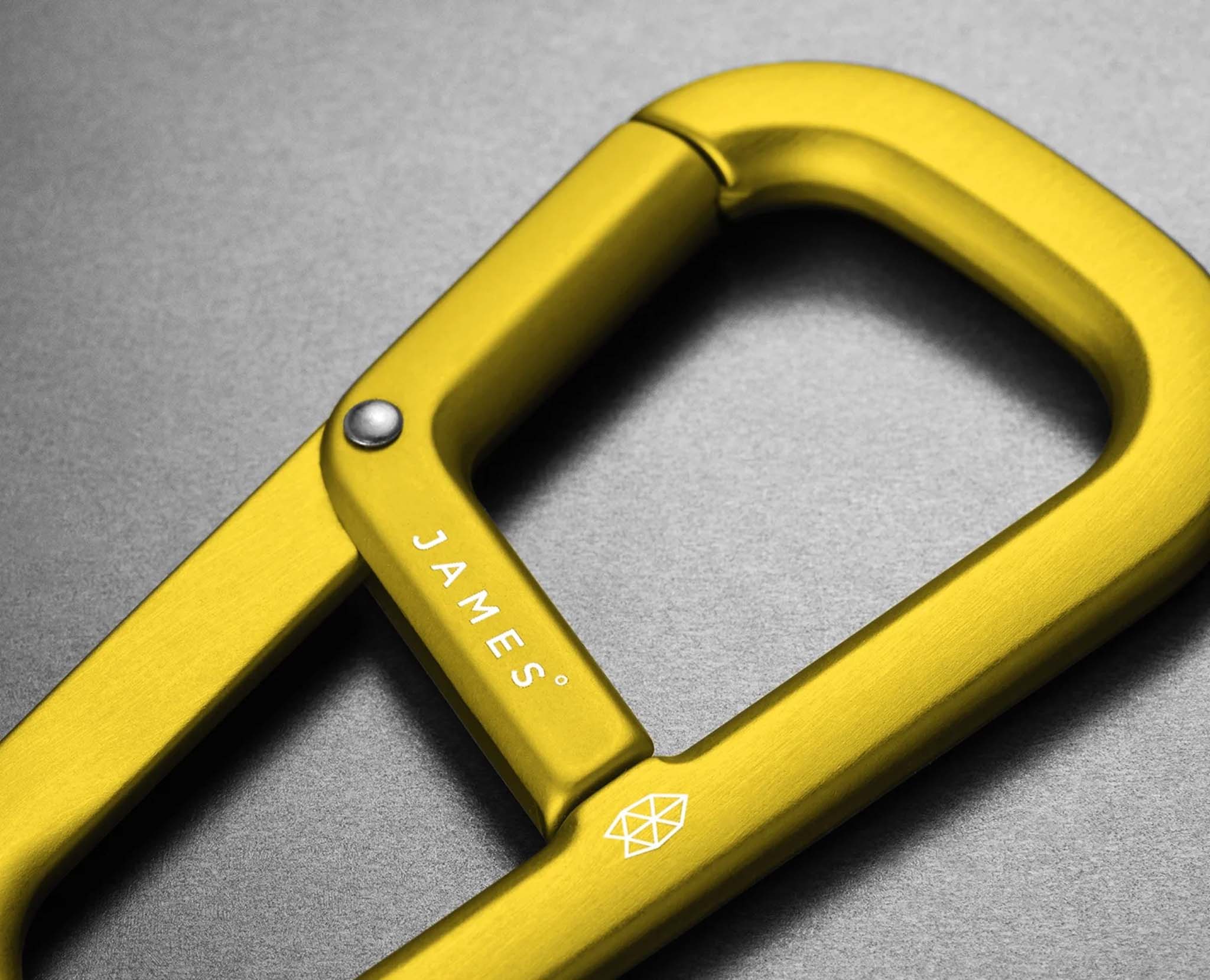 The it's time to replace that overbuilt climbing carabiner on your hip. The Hardin is The James Brand's new drop-forged carabiner with a modern aesthetic and a solid construction that will keep your keys and your valuables secure and readily at hand. Made out of 6063 aluminum, with a two-compartment design, a strong spring-loaded gate, and a broad palette of available colors, the Hardin is the perfect daily companion for your jeans or backpack.